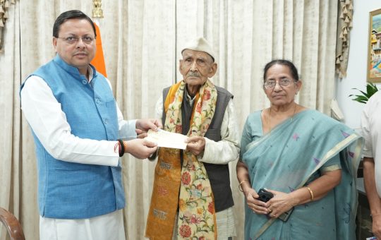 देहरादून,। मुख्यमंत्री पुष्कर सिंह धामी से शनिवार को मुख्यमंत्री आवास में 96 वर्ष के पंडितवाड़ी, देहरादून निवासी जबर सिंह रावत...