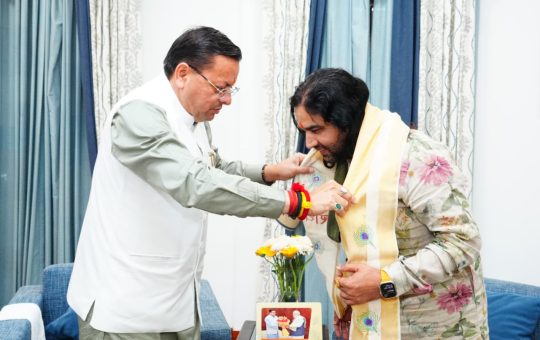 मुख्यमंत्री धामी से देवकीनंदन ठाकुर जी महाराज से की शिष्टाचार भेंट