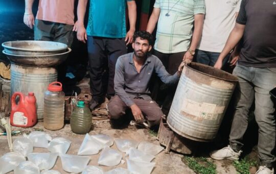 आबकारी विभाग ने खंडहर में की छापेमारी, 55 लीटर कच्ची शराब और छह ड्रम लहन बरामद