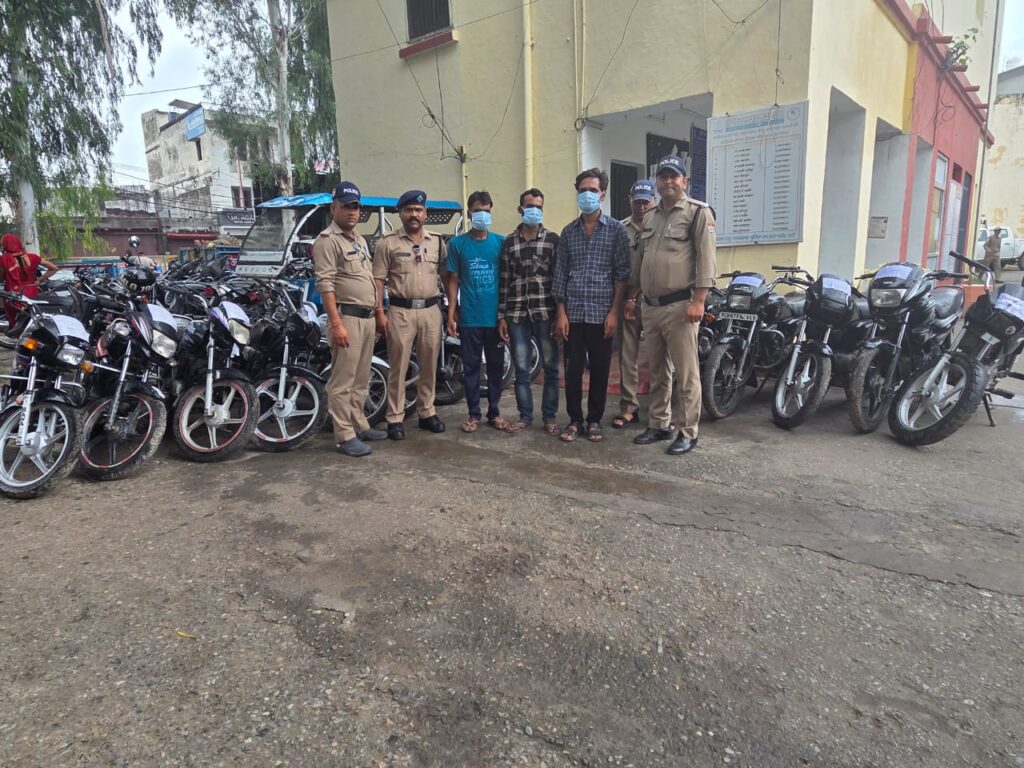वरिष्ठ पुलिस अधीक्षक प्रमेन्द्र डोबाल ने जानकारी देते हुए बताया कि बीते दिनों कोतवाली रूड़की में आर्यन पुत्र राजीवन कुमार निवासी सिसोना थाना भगवानपुर द्वारा चोपाटी बाजार से तथा रितिक पुत्र रमेश निवासी खानपुर द्वारा रविदास घाट से बाइक चोरी होने के मुकदमें दर्ज कराये गये थे। मामले मे पुलिस ने चोरों की तलाश शुरू कर दी गयी। चोरों की तलाश में जुटी पुलिस टीम ने कड़ी मशक्कत के बाद कल देर रात एक सूचना के तहत कार्यवाही करते हुए सोनालीपुल के पास नहर पटरी पर चेकिंग के दौरान तीन संदिग्ध व्यक्तियों को हिरासत में लिया गया। पूछताछ में उन्होने अपना नाम दिनेश कुमार पुत्र बुद्धालाल निवासी ग्राम कीरतपुर कुईया थाना कुँवाये, जिला शाहजहांपुर उत्तरप्रदेश, प्रदीप कुमार पुत्र सुगना निवासी ग्राम मुण्डलाना थाना कोतवाली मंगलौर, जिला हरिद्वार व नदीम पुत्र आरिफ निवासी ग्राम सफरपुर कोतवाली गंगनहर, रुड़की बताया। जिनकी निशानदेही पर कोतवाली रूड़की क्षेत्र से चुरायी गयी दो मोटरसाइकिले बरामद की गयी। पुलिस द्वारा जब उनसे सख्ती से पूछताछ की गयी तो उन्होने बताया कि उन्होंने हरिद्वार के अलावा मुजफ्फरनगर और सहारनपुर से भी मोटरसाइकिलें चोरी की हैं, जिन्हें नहर पटरी के पास एक बाग में छिपाकर रखा गया है। बताया कि हम चुरायी गयी मोटरसाइकिलों को नंबर प्लेट बदलकर औने पौने दाम पर बेच देते थे और अपना शौक पूरा करते थे। जिनकी निशानदेही पर वहां से 9 बाइक और बरामद की गयी है। बताया कि दिनेश हमारा टीम लीडर है जो गोशाला में काम करता है, नदीम शटरिंग का काम करता है जो कि हाई स्कूल पास है तथा प्रदीप अनपढ़ है जो खेती का काम करता है दिनेश के नेतृत्व में इन्होंने चोरी के प्लान बनाए और इन्हें अंजाम दिया।