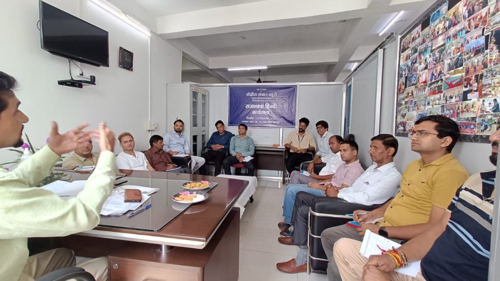 कार्यशाला को दो सत्रों में विभाजित किया गया। प्रथम सत्र पूर्वाह्न 10ः00 बजे से 01ः30 बजे तक आयोजित किया गया, जिसमें “ऐतिहासिक एवं संवैधानिक दृष्टिकोण से राजभाषा की सामान्य जानकारी एवं हिंदी दिवस का महत्व” विषय पर विस्तार से चर्चा की गई। प्रतिभागियों ने इस सत्र के माध्यम से हिंदी दिवस की ऐतिहासिक पृष्ठभूमि, संवैधानिक प्रावधानों और राजभाषा नीति के महत्व को समझा। द्वितीय सत्र अपराह्न 02ः00 बजे से 04ः00 बजे तक चला, जिसमें “कार्यालयी हिंदी का स्वरूप” विषय पर प्रशिक्षण दिया गया। इस सत्र में प्रतिभागियों को पत्राचार, नोटिंग, लेखन शैली तथा सरकारी कार्यों में हिंदी के व्यवहारिक उपयोग की जानकारी दी गई। कार्यशाला के अंत में प्रतिभागियों ने इसे अत्यंत उपयोगी एवं ज्ञानवर्धक बताया। सभी ने एक स्वर में कहा कि ऐसे आयोजन हिंदी के प्रति रुचि और दक्षता को बढ़ाने में सहायक होते हैं तथा राजभाषा के प्रचार-प्रसार को और सशक्त बनाते हैं।