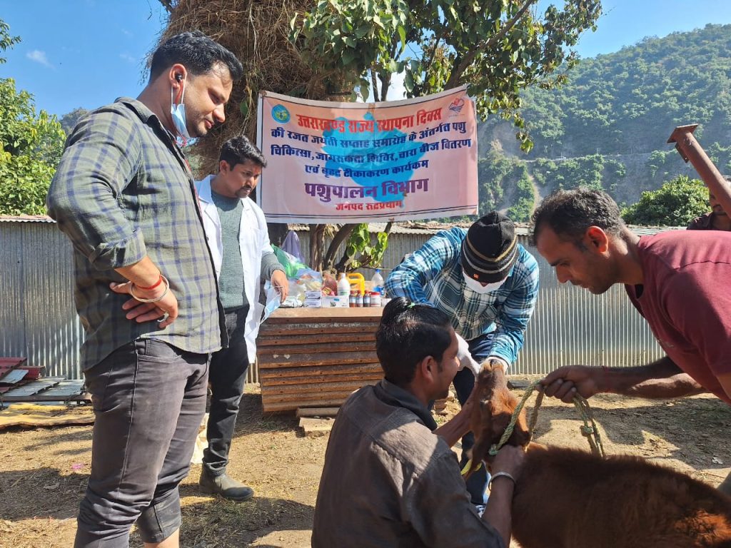 रुद्रप्रयाग,। राज्य स्थापना दिवस की रजत जयंती सप्ताह समारोह के तहत पशु पालन विभाग की ओर से पशु चिकित्सा, जागरूकता शिविर, चारा बीज वितरण एवं वृहद टीकाकरण कार्यक्रम का आयोजन बद्रीनाथ हाईवे के सिरोबगड़ से सटे पपड़ासू गांव में किया गया। कार्यक्रम में गौ रक्षा विभाग की टीम भी शामिल रही।