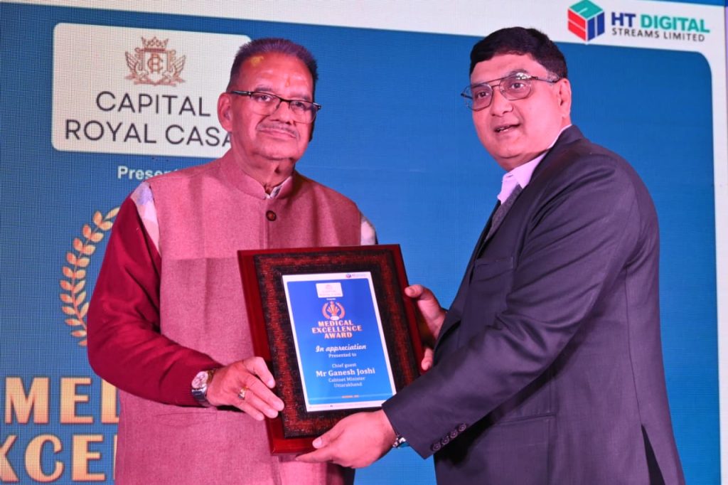 देहरादून,। कैबिनेट मंत्री गणेश जोशी ने देहरादून स्थित एक होटल में “हिंदुस्तान मेडिकल एक्सीलेंस अवॉर्ड” कार्यक्रम में बतौर मुख्य अतिथि प्रतिभाग किया। इस अवसर पर उन्होंने स्वास्थ्य क्षेत्र में उत्कृष्ट कार्य करने वाले चिकित्सकों को पुरस्कार प्रदान कर उन्हें बधाई एवं शुभकामनाएं दीं। कैबिनेट मंत्री ने अपने संबोधन में कहा कि स्वास्थ्य सेवा केवल एक पेशा नहीं, बल्कि मानवता की सबसे बड़ी सेवा है। डॉक्टर, नर्स एवं स्वास्थ्यकर्मी अदृश्य संरक्षकों की तरह दिन-रात बिना किसी भेदभाव के मरीजों की सेवा करते हैं, उनके कष्ट कम करते हैं और उनके जीवन में आशा का संचार करते हैं। उन्होंने कहा कि चाहे महामारी हो, प्राकृतिक आपदा हो या कोई अन्य संकटकृहर परिस्थिति में स्वास्थ्यकर्मियों ने अदम्य साहस, समर्पण और निष्ठा के साथ अपनी जिम्मेदारी निभाई है, जो अत्यंत प्रेरणादायक है।
