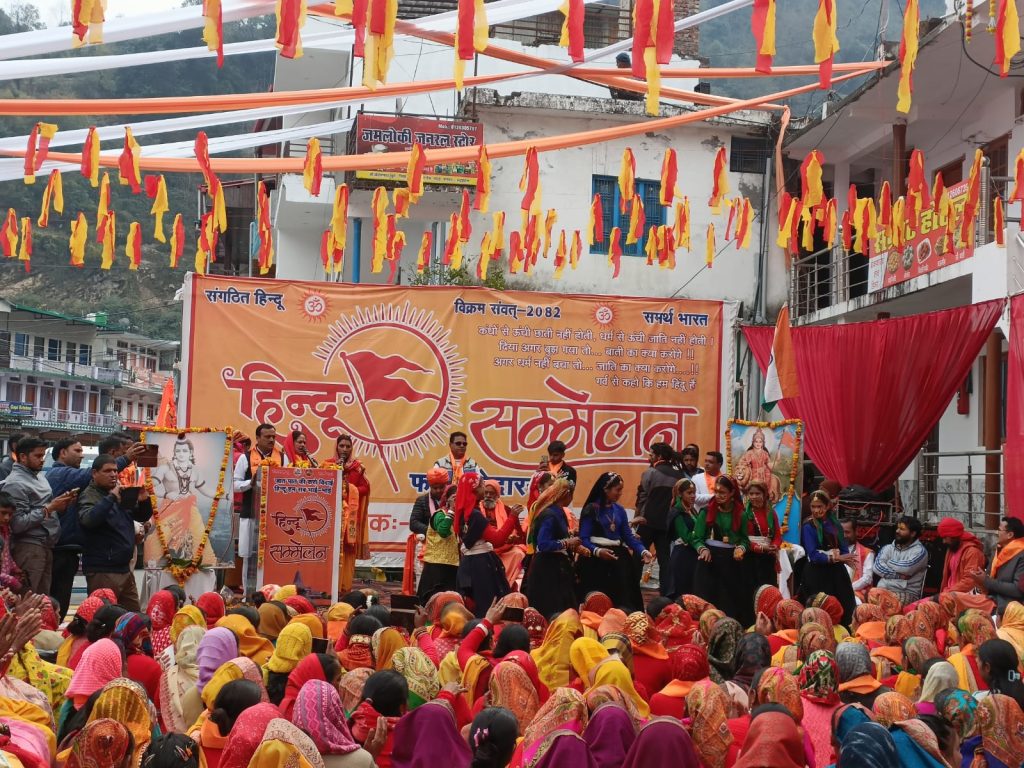 रुद्रप्रयाग,। केदारघाटी के फाटा क्षेत्र में सनातन मंच के तत्वाधान में भव्य विराट हिंदू सम्मेलन का आयोजन किया गया। भक्ति और राष्ट्रवाद के संगम वाले इस कार्यक्रम में क्षेत्र के सैकड़ों श्रद्धालुओं ने हिस्सा लेकर समाज की एकता का संकल्प लिया। कार्यक्रम का आगाज क्षेत्रीय महिलाओं की ओर से निकाली गई भव्य जल कलश यात्रा से हुआ। इसके पश्चात गौ-माता का पूजन और दीप प्रज्वलन कर सम्मेलन की औपचारिक शुरुआत की गई। स्थानीय विद्यालय की छात्राओं और महिलाओं ने भजन-कीर्तन व सांस्कृतिक प्रस्तुतियों से पूरे वातावरण को भक्तिमय कर दिया।