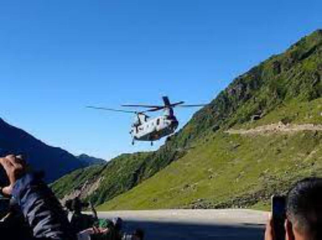 चिनूक हेलीकॉप्टर ने की ट्रायल लैंडिंग, कल से पुननिर्माण सामग्री पहुंचाएगा धाम